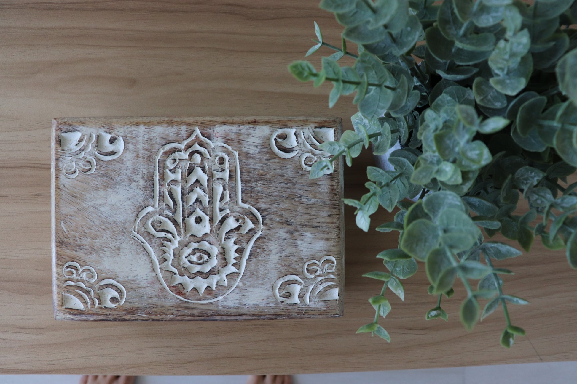 -Wooden Hand-carved chest for ritual safekeeping. Made in India.